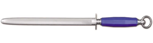 Acciaino con forma ovale con grana fine adatto all’affilatura di coltelli o alla lucidatura del filo dopo il passaggio su acciaini per sgrossatura.