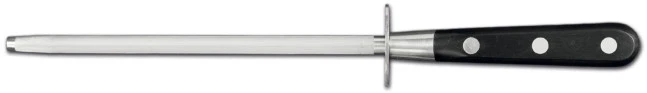 Questo acciaino ha manico in POM, antiurto e igienico. Perfetta aderenza del manico all’acciaio ed ai rivetti, senza la minima fessura.