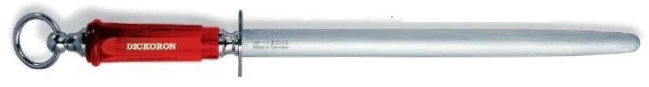 Acciaino ovale DICKRON CLASSIC taglio zaffiro, modello professionalmente unico nel suo genere, primo nella gamma di acciarini. Manico rosso e lama con il leggendario taglio-zaffiro acciarino Dickron combina la migliore qualita con un elegante design