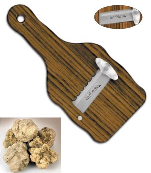 Mandolina tagliatartufi con lama liscia in pregiato legno di palissandro.