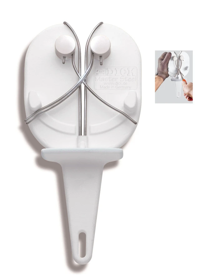 L’uso è semplice: Tirare il coltello con pressione leggera in modo curvo attraverso l’utensile di affilatura del coltello. Ripetere questa procedura più volte e riceverai un coltello affilato.
