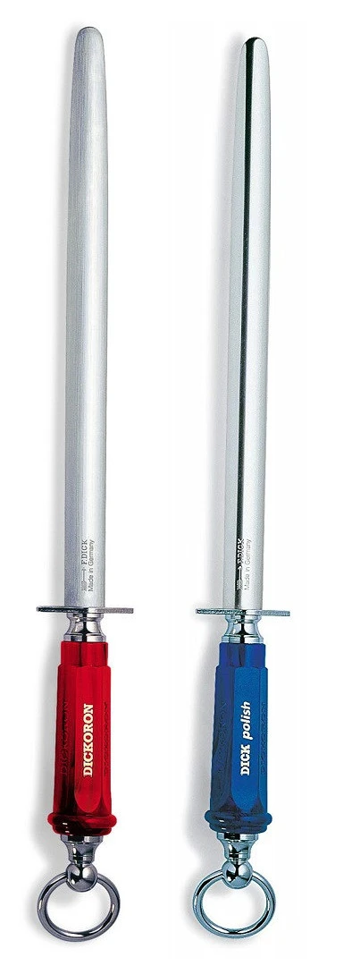 Lo speciale acciaino Dickron Classic taglio zaffiro è stato concepito per ripristinare tutti i coltelli da lavorazione carni, (disossi, francesi e coltelli da taglio), il suo speciale trattamento superficiale zaffiro ha un’abrasione eccellente sui coltelli che hanno perso il tagliente e che hanno necessità di eliminare la rugosità superficiale formatesi nel tagliente dopo l’utilizzo intensivo della lama.