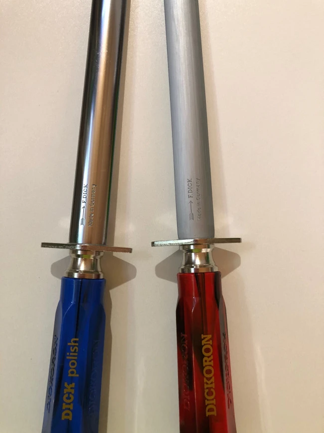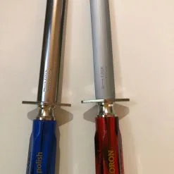 Entrambi gli acciaini hanno lunghezza di cm. 30, questa lunghezza dell’acciaino per l’affilatura è perfetta se si riesce ad affilare l’intero tagliente in una sola corsa.