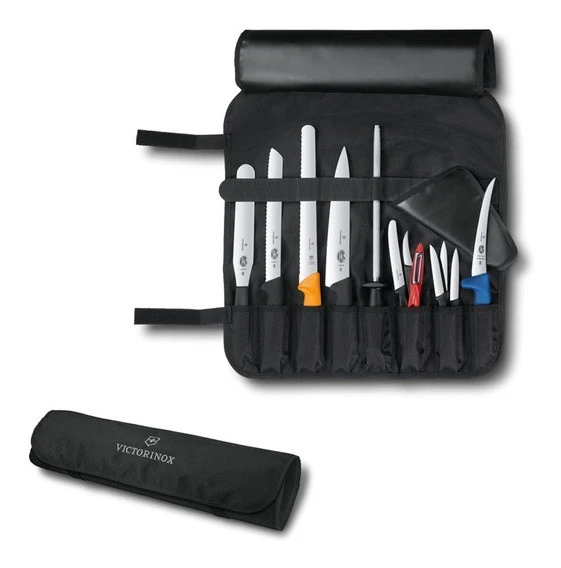 L’avvolgibile valigetta portacoltelli vuoto di Victorinox è una borsa solida e professionale con spazio sufficiente per 8 coltelli con una lunghezza massima della lama di 30 cm.