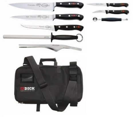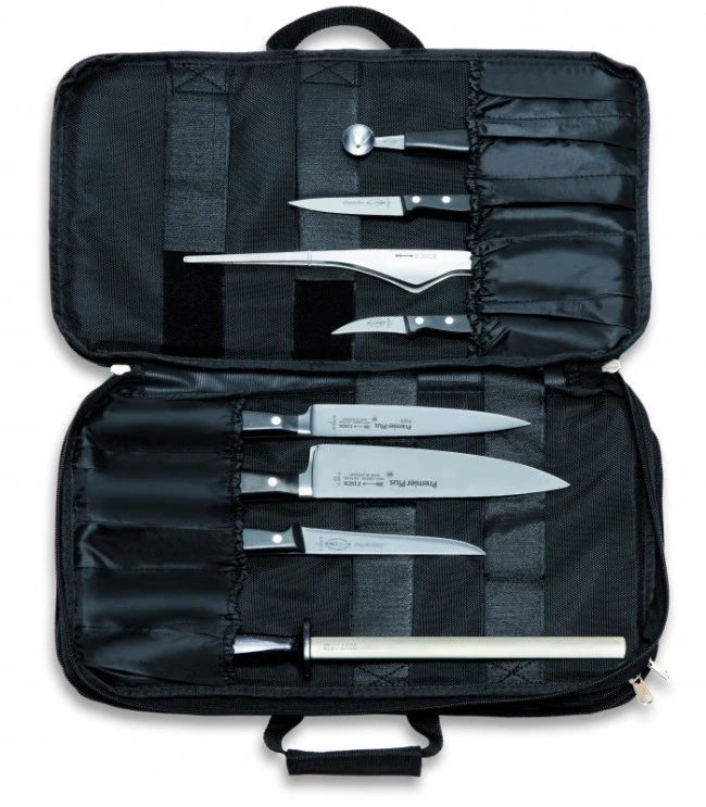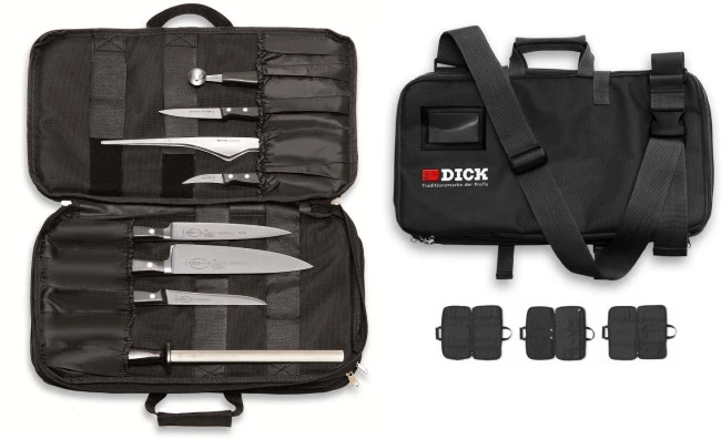 La valigetta Culinary Bag di Dick una pratica valigetta che puo contenere fino a 34 coltelli e accessori, questo permette al cuoco o pasticcere di avere al momento una valigetta con i coltelli base della cucina e nel tempo allestirla con nuovi coltelli o coltelli che gia si possiede.