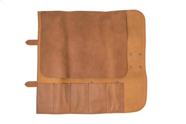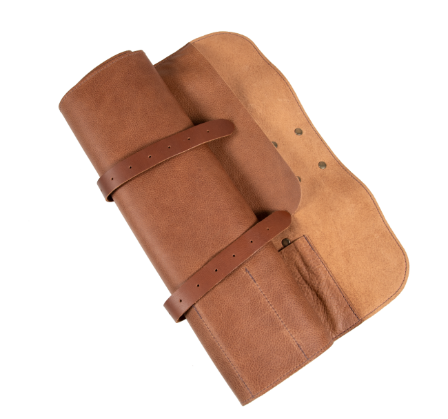 Design speciale per questa borsa in pelle portacoltelli per riporre e trasportare i tuoi coltelli più preziosi.