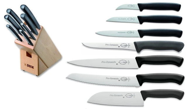 Ceppo di Legno di Dick completo di coltelli della linea da cucina Prodynamic.