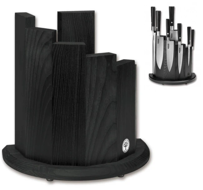 Il ceppo portacoltelli in legno di frassino tinto è estremamente pratico da maneggiare, facile da pulire e dona ai coltelli da cucina di alta qualità una casa adeguata.