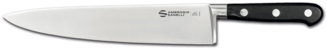 Manico in POM, antiurto e igienico. Perfetta aderenza del manico all’acciaio ed ai rivetti, senza la minima fessura.