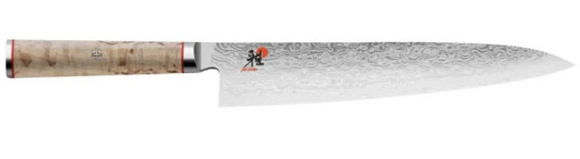Questo coltello Gyutoh da cuoco è un vero tuttofare largamente utilizzato sia dal cuoco professionale che amatoriale. Adatto principalmente per tagliare carni e pesce, si presta perfettamente anche per frutta verdure di tue le dimensioni, per tritare e sminuzzare.