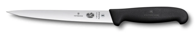 Coltello per filettare il pesce. Manico in Fibrox nero antiscivolo, lama stretta e flessibile. Lunghezza della lama cm. 18.