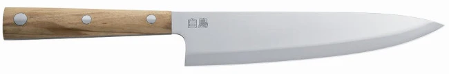 Coltello Gyuto grande della Linea Cucina Giapponese Hakuchō di Due Cigni con manico in legno di olivo.