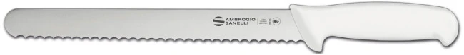 Coltello di Sanelli Ambrogio realizzato con manico bianco in elastomero TPE e gomma termoplastica, adatto all’uso in pasticceria e panetteria.