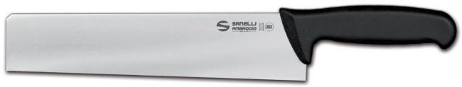 Questo coltello con lama alta cm. 5,6 e lunga cm. 25 è adatto al taglio di porzioni di pasta e formaggio.