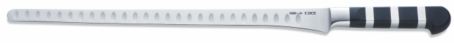 Coltello per salmone e prosciutto lama alveolata Serie 1905 di Dick potete ottienere fette sottili e lisce di salmone per sushi e altre ricette con questa affettatrice per salmone.