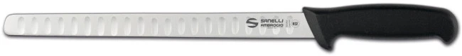 Coltello salmone lama con alveole cm. 28 perfetto per affettare pesce crudo, ma anche brisket o salumi stagionati, con una lunghezza di lama di cm. 28 flessibile.