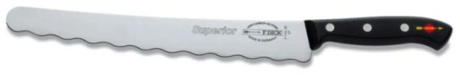 Coltello con taglio ondulato filo particolare indicato per il taglio di prodotti da forno.