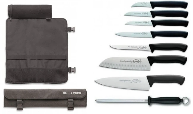 Valigetta arrotolabile di Dick completa di coltelli Dick Prodynamic, serie leggera disegnata per i cuochi con manico ergonomico.