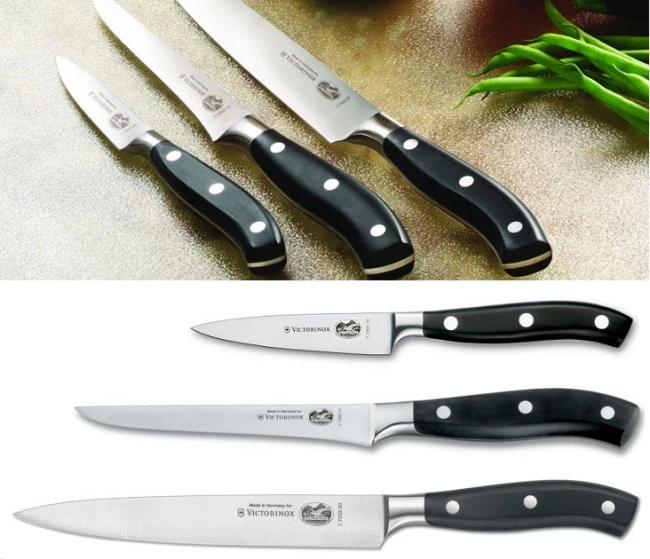 Questi tre coltelli forgiati della linea Gran Maitre di Victorinox sono un perfetto trio per consentivi un’ottima lavorazione della preparazione delle vostre carni: piccoli volatili, pollo, manzo, maiale.