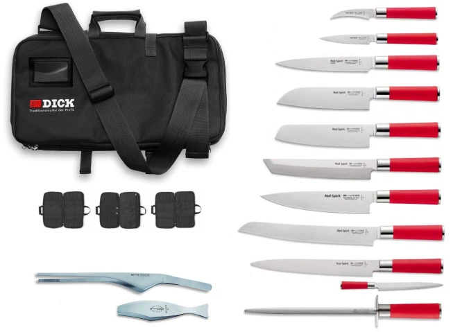 Questa valigetta capiente di Dick, Culinary Bag, include i seguenti coltelli e accessori: