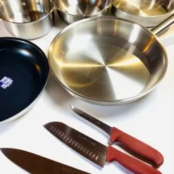 Con Le Basi: set di utensili da cucina essenziali la cucina di base abbiamo unito 5 padelle e 3 coltelli base per cucinare in modo intelligente e semplice con gli strumenti giusti.