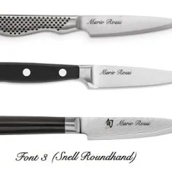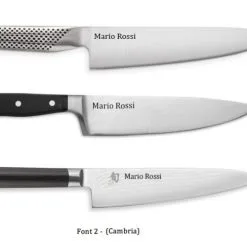 Fai incidere al laser il nome o un testo che preferisci per un regalo, un’occasione particolare, per te, o per motivi professionali, per differenziare i tuoi coltelli, per gli chef, per gli studenti a scuola.
