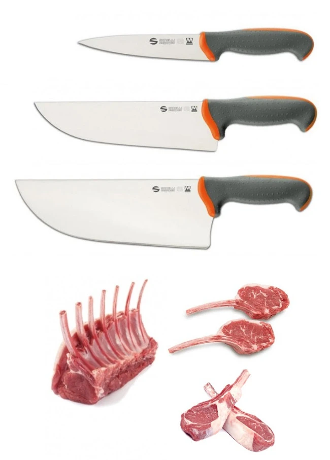 Un set utile per la preparazione e la macellazione del carrè di agnello o per ricavare le costolette di agnello per la cottura in cucina o al barbecue.