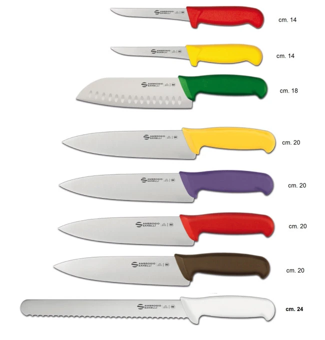 Il Set Cucina HACCP Supra Colore di Ambrogio Sanelli include i seguenti coltelli: