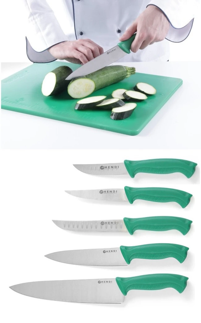 Il manico dei coltelli sono tutti in colore verde, realizzati in polipropilene a norme HACCP.