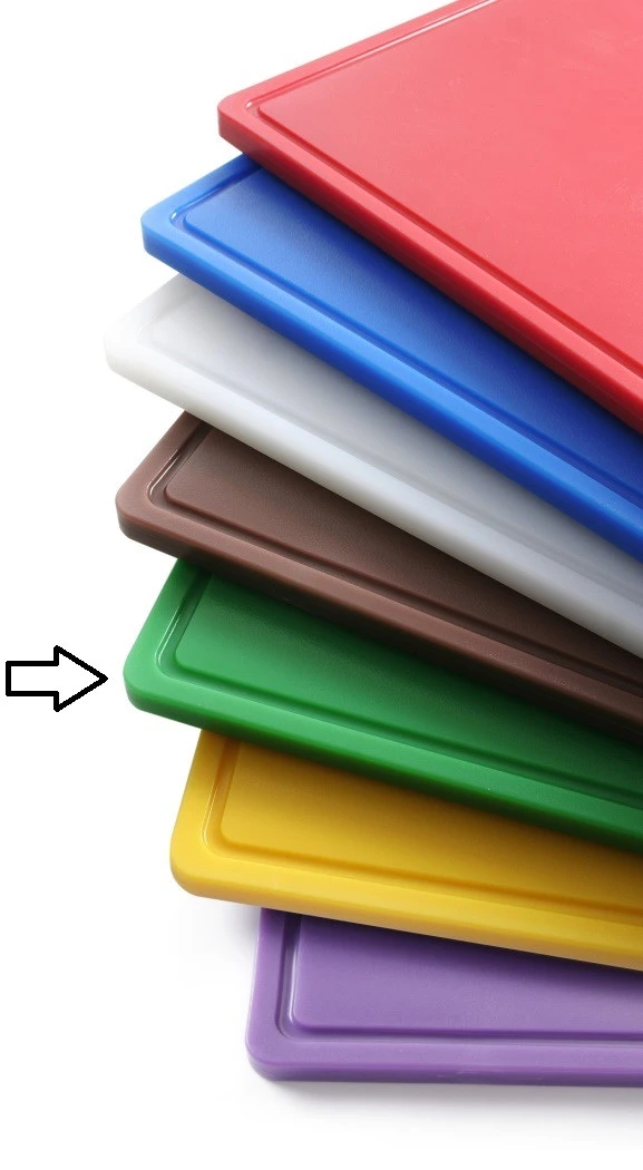 n. 1 Tagliere gastronorm 1/2 colore verde con dimensioni 26,5 x 32,5 cm. Altezza 0,9 cm.