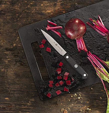 Questo pratico coltello da cucina ZWILLING® Serie Gourmet è adatto per una varietà di attività in cucina grazie alla sua lama da 10 cm. Con esso puoi tagliare e pulire frutta, verdura o persino carne e pesce. La lama scivola facilmente attraverso il cibo rendendo la preparazione molto più semplice.