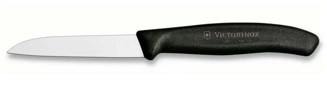 Spelucchino di Victorinox con nuovo manico ergonomico, perfetto per la pulizia di tutti i vegetali. Punta arrotondata per poter lavorare anche di incisione posizionando il dito indice sulla punta della lama, senza possibilità di forarsi.