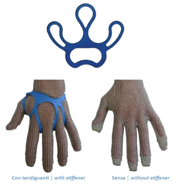 Il tendiguanti permette di indossare con maggiore sicurezza il guanto in maglia inox, affinché questo aderisca perfettamente alla mano.