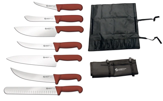 Splendida valigetta arrotolabile completa di 7 coltelli professionali Linea Barbecue BBQ di Ambrogio Sanelli perfetta per l’appassionato di barbecue, per i componenti del team che partecipano alle gare di barbecue dei vari circuiti WBQA e KCBS.
