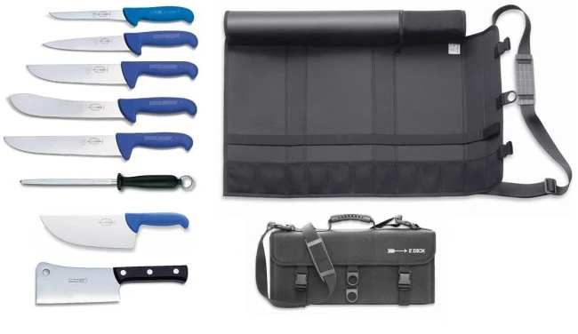Valigetta di Dick completa di tutti i coltelli base per la macellazione di suino, bovino e ovino.