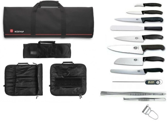 Valigetta completa di coltelli Victorinox e accessori ideale per la cuoca che desidera avere tutto in necessario per il lavoro professionale in cucina.