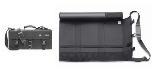 Valigetta in cordura lavabile, molto capiente di Dick ottima per il trasporto di coltelli e strumenti da cucina (termometri, aghi, spatole, pinze, forbici…) con larghezza base aperta 82 cm.