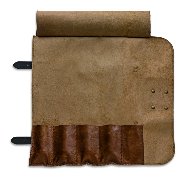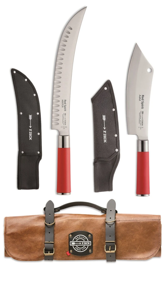 L’elegante valigetta in pelle, ha 5 tasche che possono essere equipaggiate individualmente e sono fornite con i due coltelli speciali Serie Red Spirit di Dick: